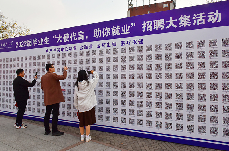 BB贝博艾弗森官网举办“大使代言,助你就业——无企业入场招聘会。(徐展/摄)