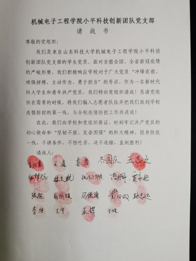 学生党员志愿者在请战书上按下红手印