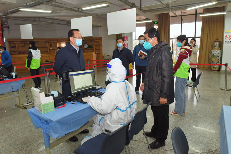 罗公利一行还到体育馆、学校北门、西北门及校医院进行督导检查。每到一处,向相关负责人与现场工作人员详细询问情况,慰问工作人员,嘱咐他们做好个人防护,抓紧抓实抓细各项防控措施。