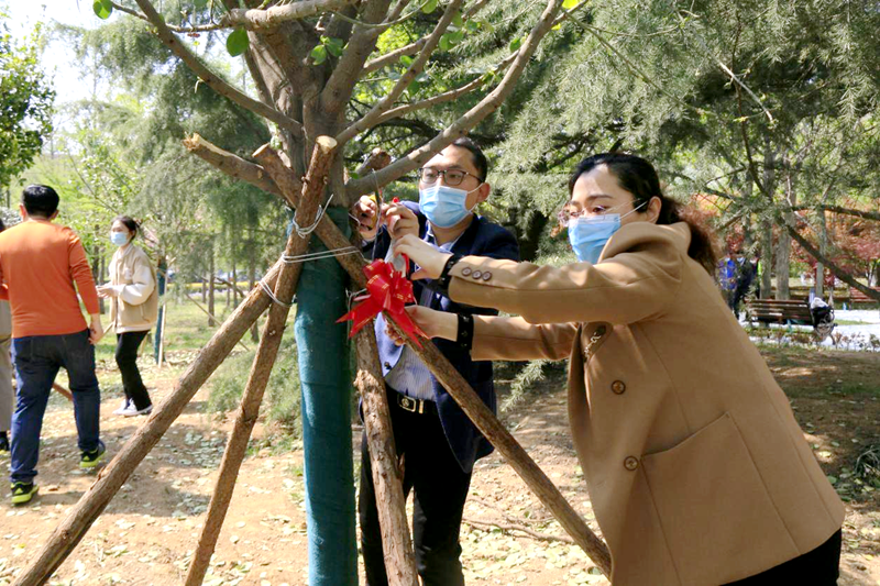 为桂花树苗挂牌(摄影:王斌)