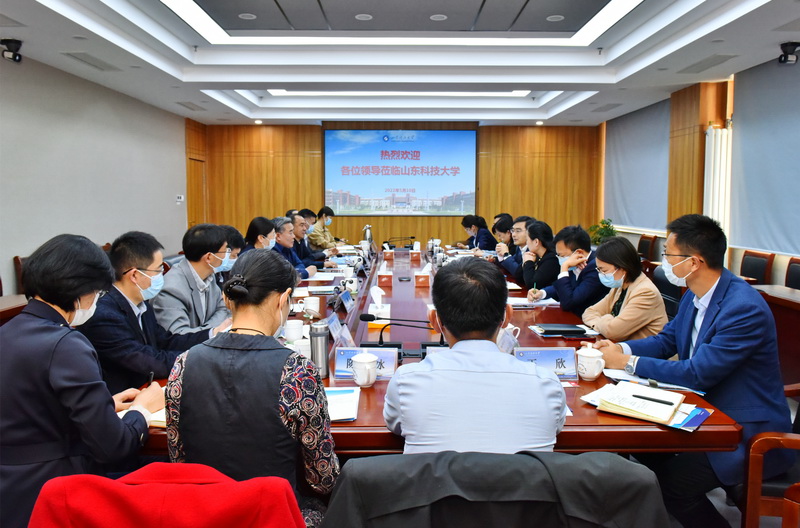 在访企拓岗服务青岛座谈会上,校长姚庆国与青岛市人社局、西海岸新区人社局有关负责人及海信集团、青岛银行股份有限公司、青岛啤酒股份有限公司、中建八局第四建设有限公司、芯恩(青岛)集成电路有限公司、青岛高测科技股份有限公司等企业人力资源负责人进行座谈交流。副校长曾庆田主持座谈会。