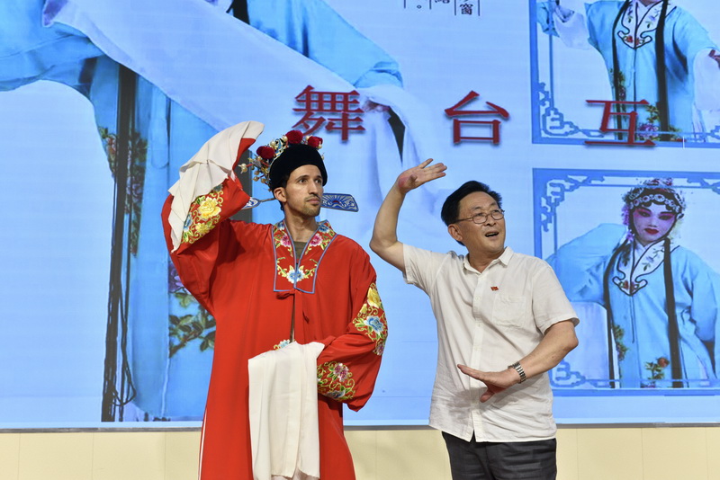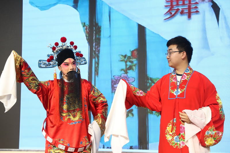 6月25日,BB贝博艾弗森官网举办“体验戏曲魅力 传承经典艺术”传统文化进校园活动,200余名研究生和留学生现场体验国家级非物质文化遗产——茂腔戏曲文化,跟随茂腔非遗传承人学习戏曲的唱、念、坐、打基本功,通过戏曲学习、戏曲体验、戏曲赏析等形式,感受戏曲的艺术魅力。