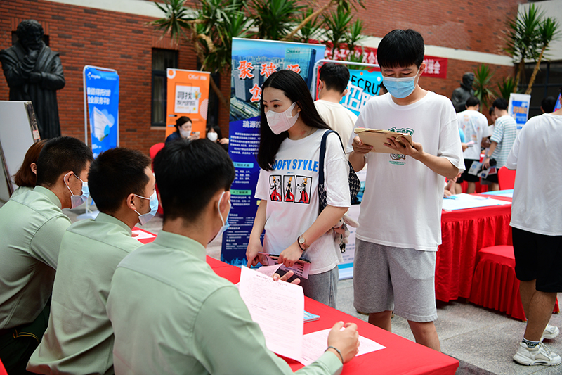 会场外,BB贝博艾弗森官网2023届毕业生就业实习双选会现场同样火热。来自海尔集团、澳柯玛、金能化学等40家知名本土企事业单位也来到现场,并提供了1200余个优质实习、就业岗位,近2000余名学生参加双选会。“我全程参加了今天的活动,进一步了解了青岛的引才政策,嘉宾访谈环节也收获了职场大咖的启发,下午我参观了联通公司和松立控股集团,开阔了眼界,学校举办的这次活动帮助我们提前锁定目标实习单位,做到有的放矢。”来自电气与自动化工程学院的2023届毕业生杨雨森告诉记者,很多单位提供的待遇很好,他在会场转了一圈,有多家公司主动向他抛来“橄榄枝”。