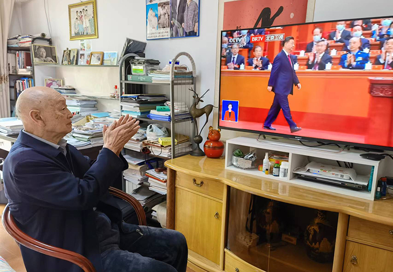 中国科学院院士宋振骐收看党的二十大开幕会直播