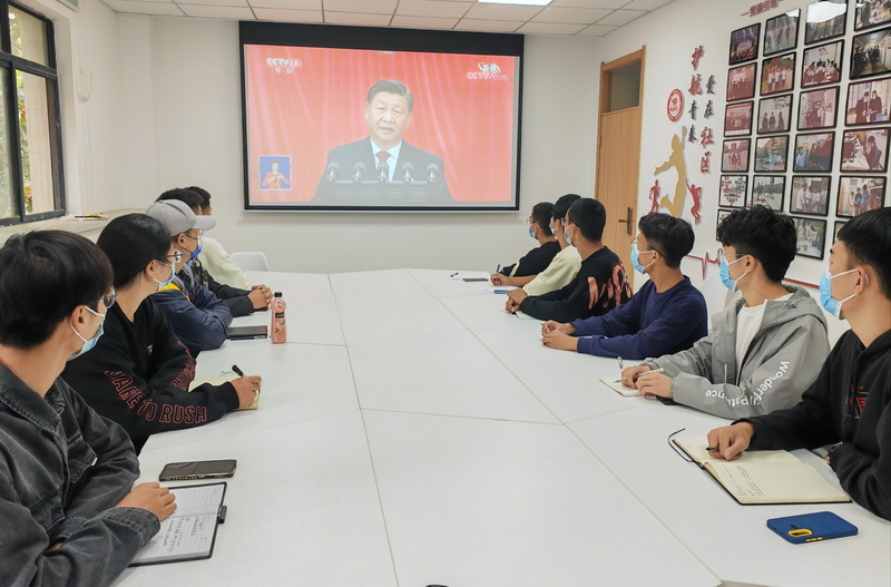 10月16日上午,广大青年学生在报告厅、党团活动室、实验室、教室、宿舍等地,通过网络、电视、广播等多种渠道收听收看党的二十大开幕会盛况,引发热烈反响。