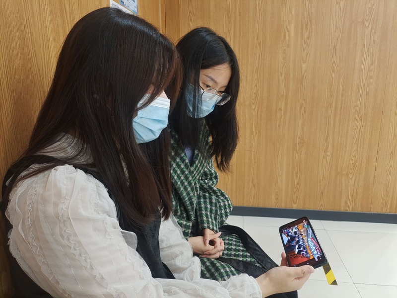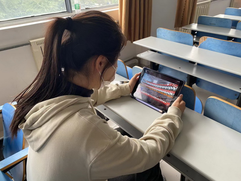 学生在宿舍收看党的二十大开幕会直播