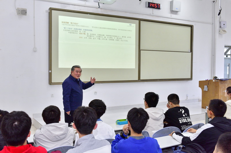 课堂上,姚庆国以习近平总书记在中国共产党第二十次全国代表大会上所作的报告为切入点,从“中心任务”“本质要求”“重大原则”“必由之路”四个方面对两个“行”进行了深入浅出地讲解。