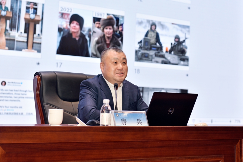 报告会上,房兵围绕“从百年复兴看百年变局”“从大国抗疫看百年变局”“从乌克兰危机看百年变局”“从大国兴衰看百年变局”四个方面破题开篇,从中华民族曾经经历过的“百年国耻”入手,从过去到当下,从国内到国际,循序渐进、旁征博引,一直谈到大国博弈背景下的大国抗疫和乌克兰危机。期间,房兵以“我们曾经经历过什么”“我们正在经历着什么”“我们还将面对着什么”为主线,运用大量历史资料和图文漫画,深入分析解读我们正在经历的“百年未有之大变局”和“百年未有之大机遇”。