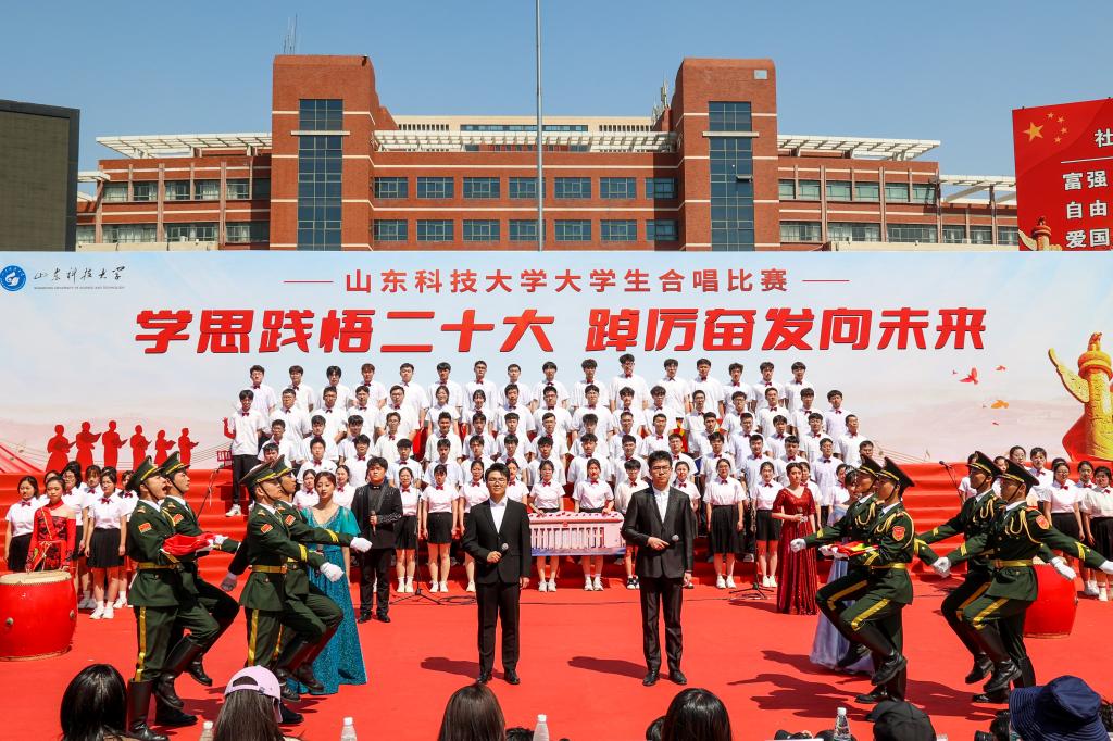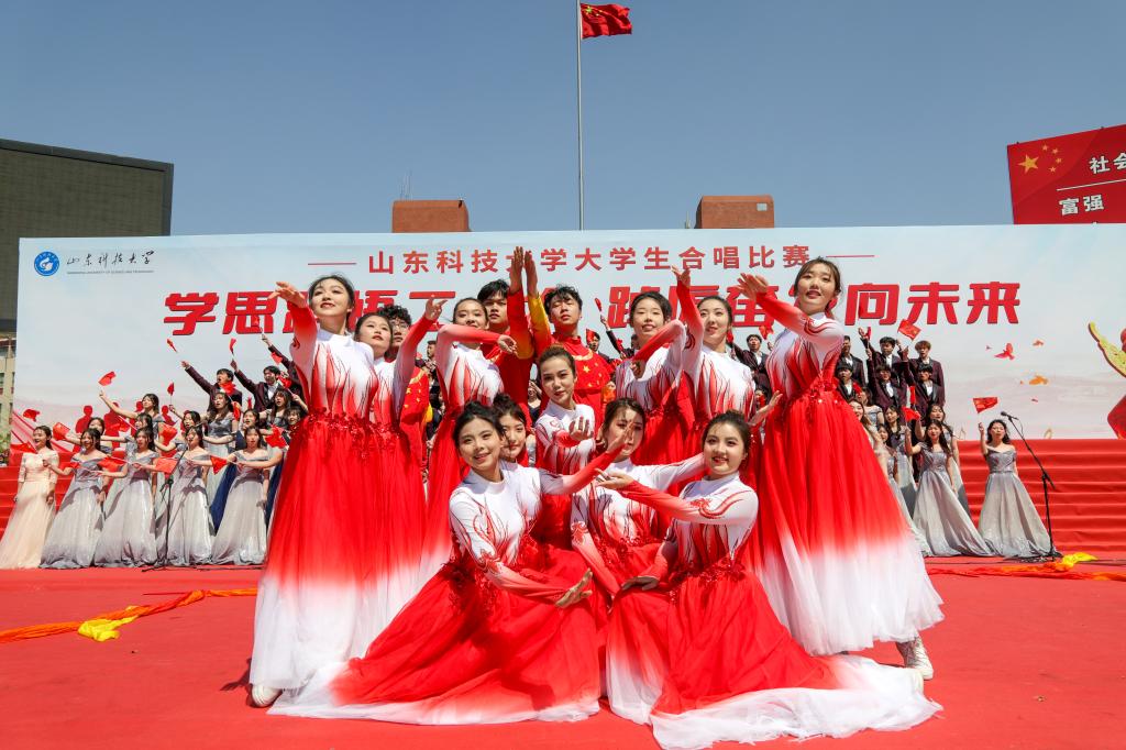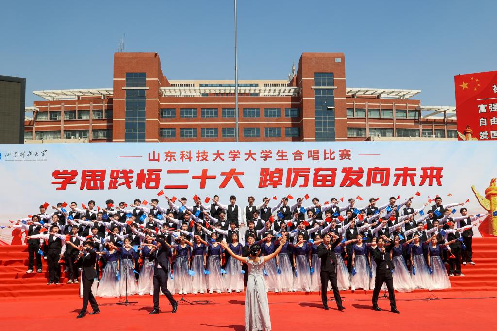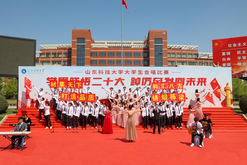 4月16日,BB贝博艾弗森官网“学思践悟二十大 踔厉奋发向未来”大学生合唱比赛在泰山广场举行,共有十九支学院代表队参加比赛。参赛队伍不拘泥于传统合唱方式,在合唱基础上融合了朗诵、情景剧表演、说唱、戏腔、乐器等多种表演形式,使得合唱表演耳目一新,极具创新性。各参赛队以其饱满昂扬的姿态、基础扎实的唱功、绚丽多彩的表演给观众带来了一场视听盛宴,赢得师生阵阵喝彩。