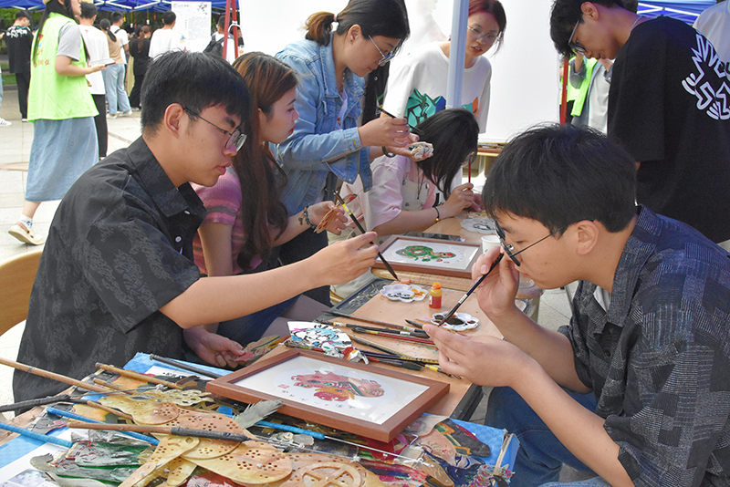 活动邀请4位非遗传承人走进校园,拉近了学生与非遗的距离。现场共设置皮影戏、吹糖人、捏面人、年画、画扇、扎染、陶艺等12项体验展示活动,让学生在“学”与“做”中亲身体验传统文化的独特魅力。