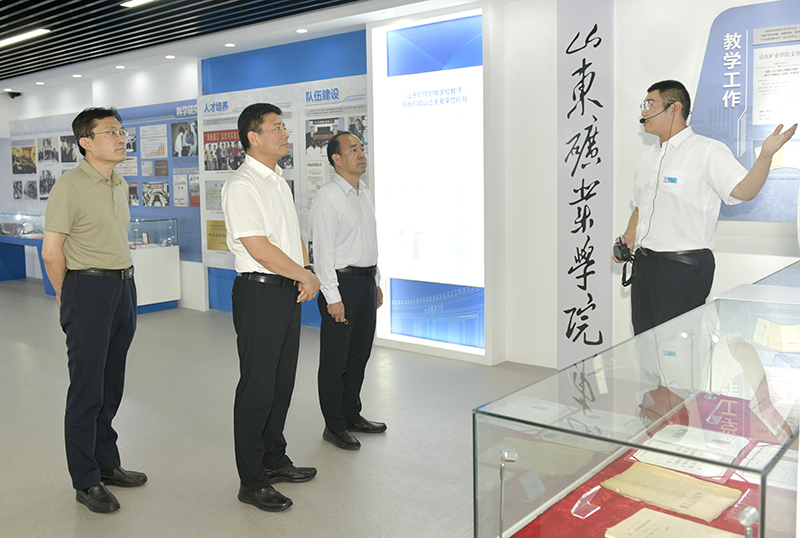 李明一行先后来到校史馆、矿山岩层智能控制与绿色开采国家重点实验室培育基地、矿山安全检测技术与自动化装备国家地方联合工程研究中心、工程实训中心和大学生活动中心等处实地查看,听取了学校领导、有关部门和实验室项目负责人的情况汇报,对贝博官网近年来改革发展取得的成绩以及在山东省高等教育高质量发展中发挥的重要作用给予充分肯定。