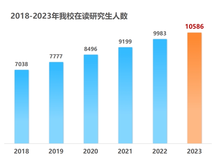 近日,记者从学校研究生院获悉,贝博官网在读研究生总数已达到10586人(含国际研究生186人),其中硕士研究生9813人,博士研究生773人,学校研究生规模首次破万,较2018年学校研究生规模增长达50.4%。