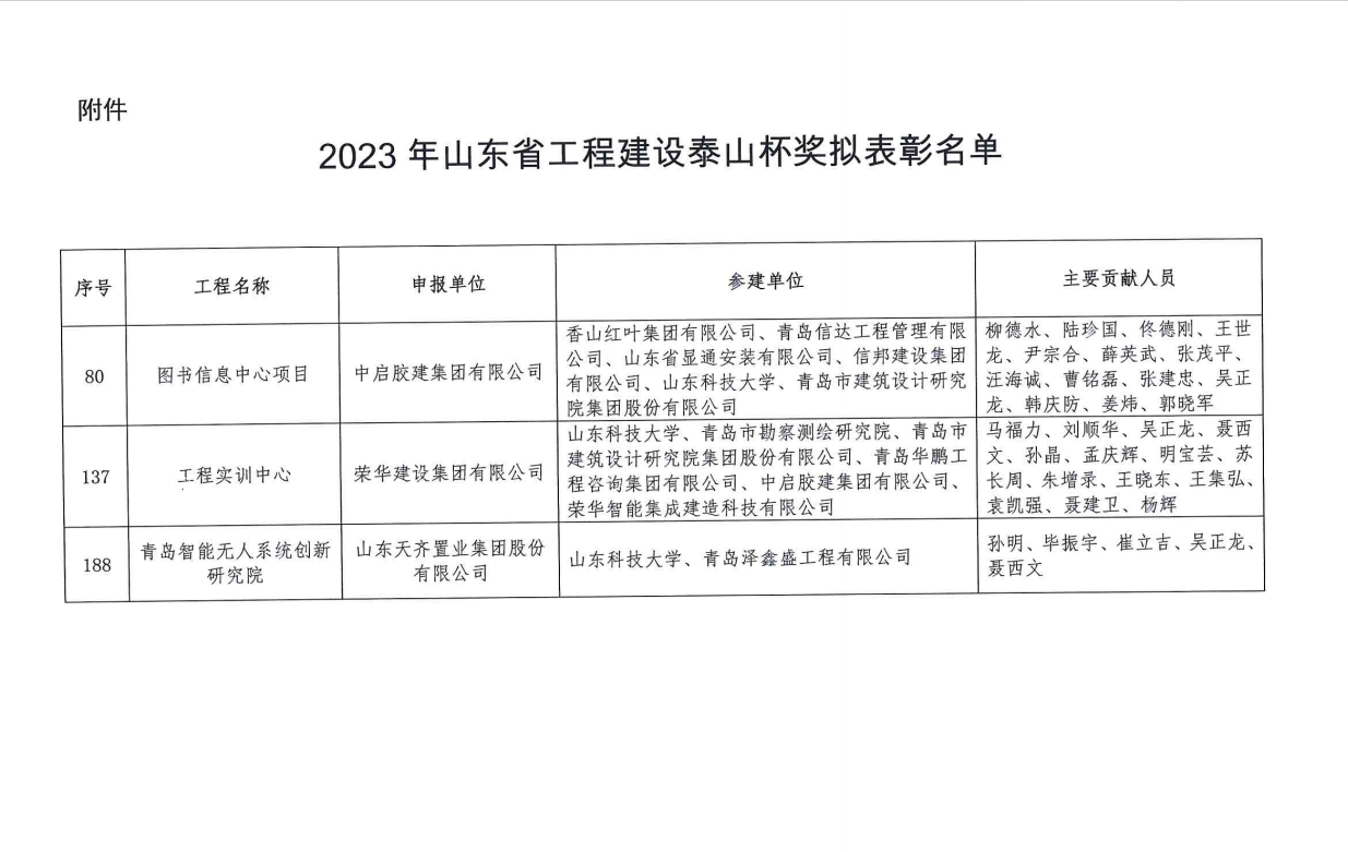 近日,2023年山东省工程建设“泰山杯”奖揭晓,经单位申报、逐级推荐和集中评选,BB贝博艾弗森官网工程实训中心、图书信息中心和青岛智能无人系统创新研究院三大工程同时在列,这是学校建设工程首次获此殊荣。
