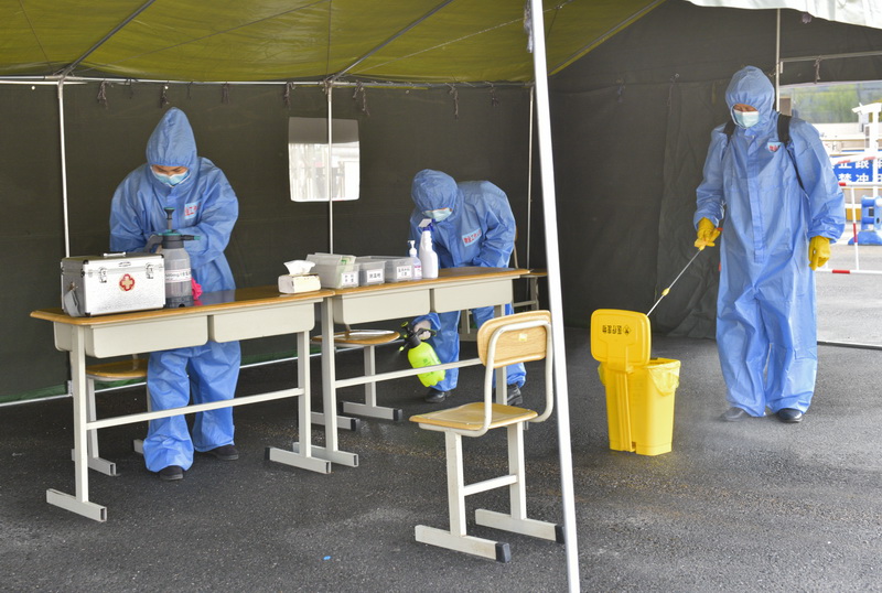 发现体温异常人员后,学校疫情防控各部门立即进入紧急状态。留观转诊组、安全保卫组、学生管理组等工作人员启动应急处置,测体温、布设警戒线、筛查信息、转运学生、彻底消毒等工作有条不紊快速展开。