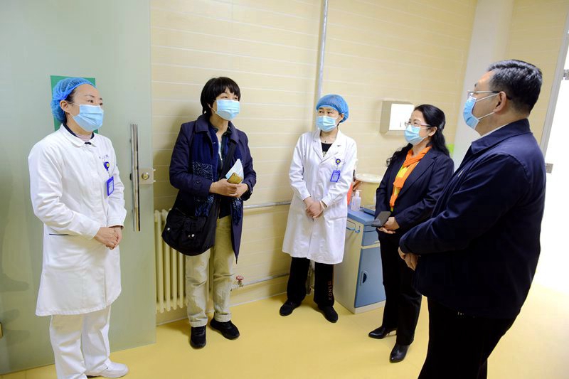 专家在查看疫情防控物资仓库(摄影:信永华)