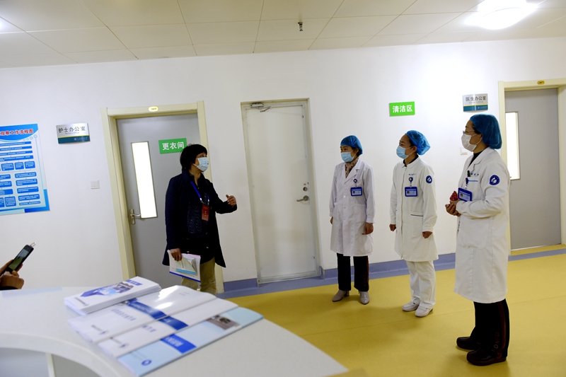 在医生办公区指导工作