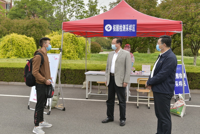 从江苏宿迁返校的电信学院研究生汤同宵一走进学校南门,早已在南门等候的校党委书记罗公利、校长姚庆国迎上前去,亲切问候“欢迎同学回家”,叮嘱他增强个人安全防护意识,树立信心,好好学习。
