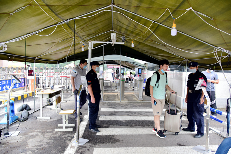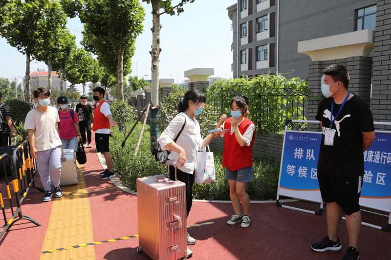 返校学生出示健康码进入返校通道(济南校区)