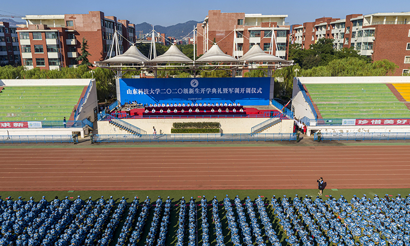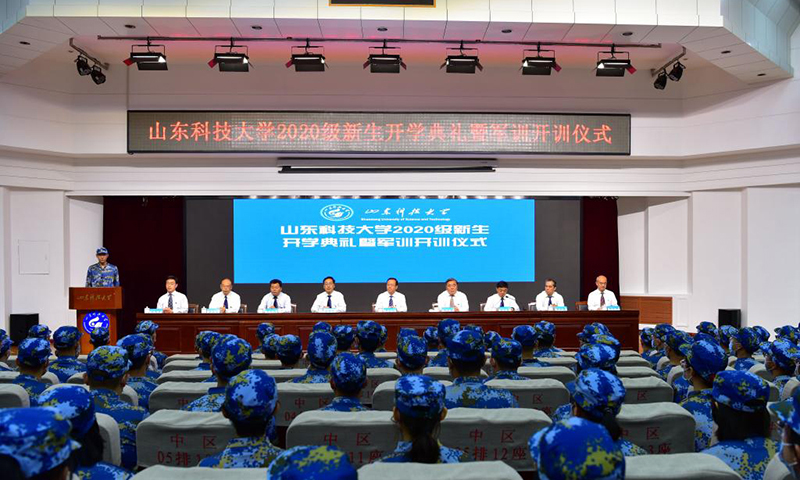 秋高气爽,丹桂飘香;鲲鹏展翅,天地翱翔。9月18日、19日,在惠风和畅的金秋季节,在雄壮的国歌声、在清越的校歌旋律中,BB贝博艾弗森官网分别在青岛校区、泰安校区、济南校区举行2020级新生开学典礼暨军训开训仪式。7900余名本科生和2500余名研究生新生精神抖擞,汇聚一堂,共上第一课,怀揣成才心,逐梦新征程。