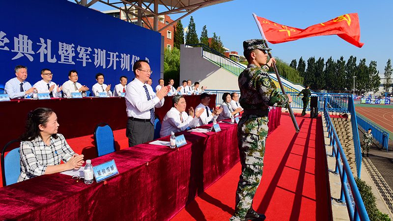 有关部门、各院系主要负责人,泰安校区、济南校区有关负责人,学生工作干部、教师代表、军训教官及2020级全体新生参加了典礼。