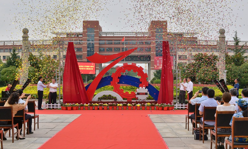 仪式最后,进行了校庆倒计时牌揭牌仪式。罗公利、姚庆国等为校庆倒计时牌揭牌。
