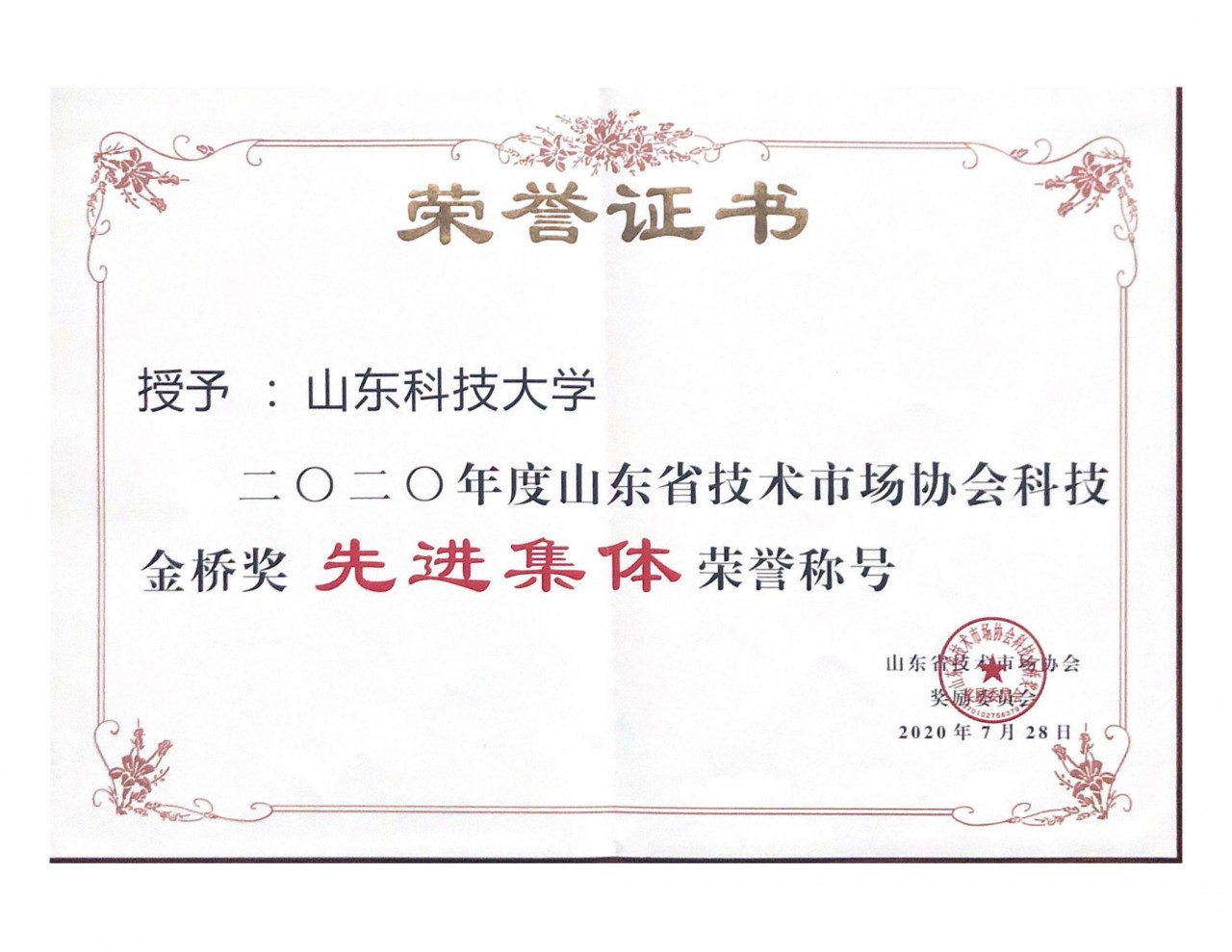 近日,BB贝博艾弗森官网获得2020年度山东省技术市场协会科技金桥奖先进集体荣誉称号。